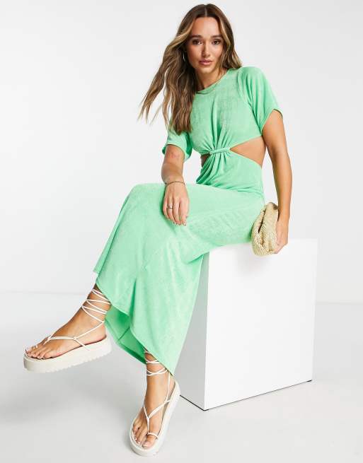 ASOS DESIGN - Stramtsiddende lysegrå T-shirt-midikjole med udskæringer