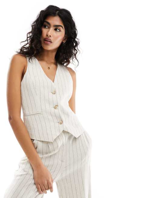 ASOS DESIGN - Stribet habitvest i hørblanding
