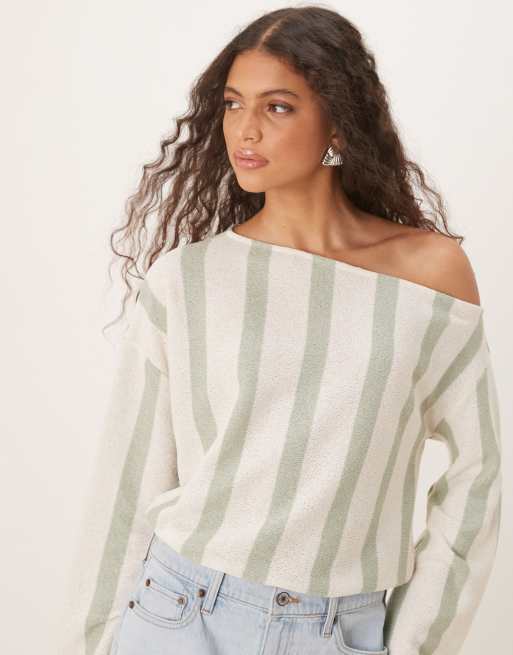 ASOS DESIGN - Stribet og løstsiddende top i jerseystrik med offshoulder