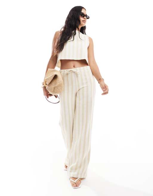 ASOS DESIGN - Stribet tanktop og lavtaljede bukser med vidde i camel