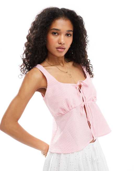 ASOS DESIGN - Stribet top med tekstur og bindebånd foran i pink