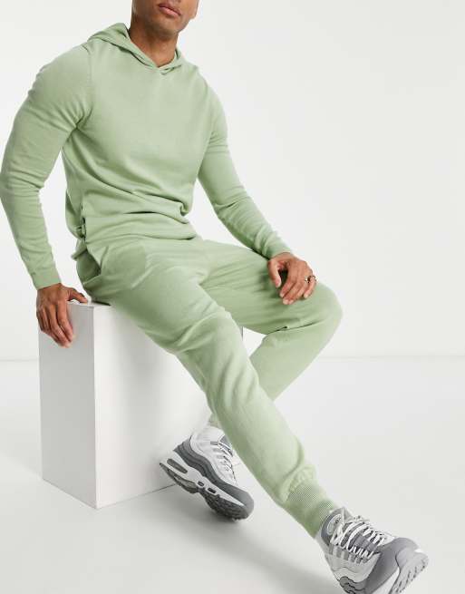 ASOS DESIGN - Strikkede joggingbukser i salvigrøn - Del af sæt