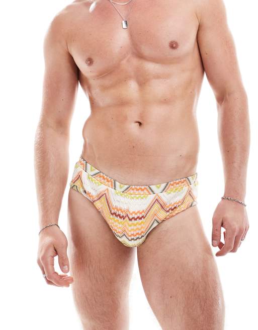 ASOS DESIGN - Strikkede svømmebriefs med orange print