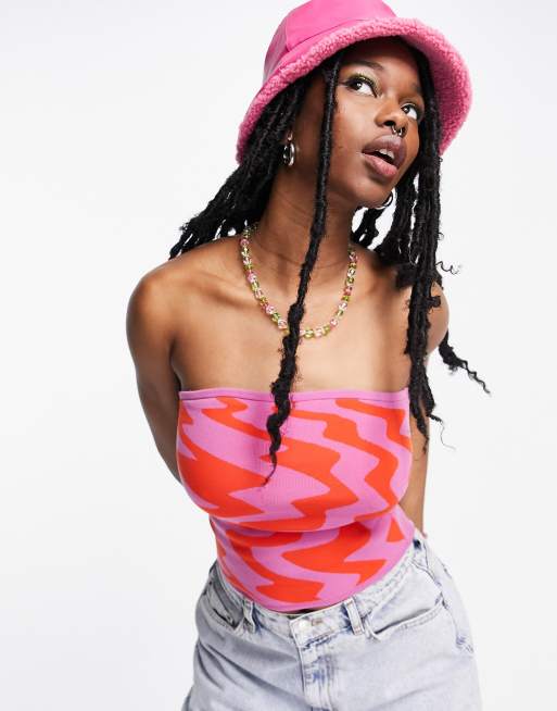 ASOS DESIGN - Strikket bandeau-top med bølget mønster