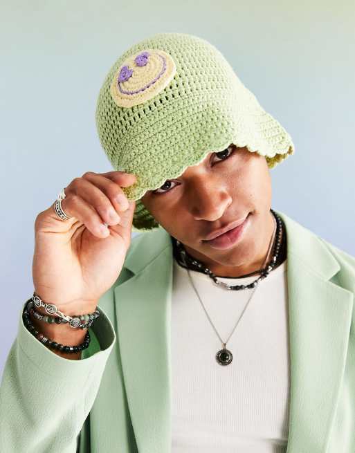 ASOS DESIGN - Strikket bøllehat i grøn med smiley