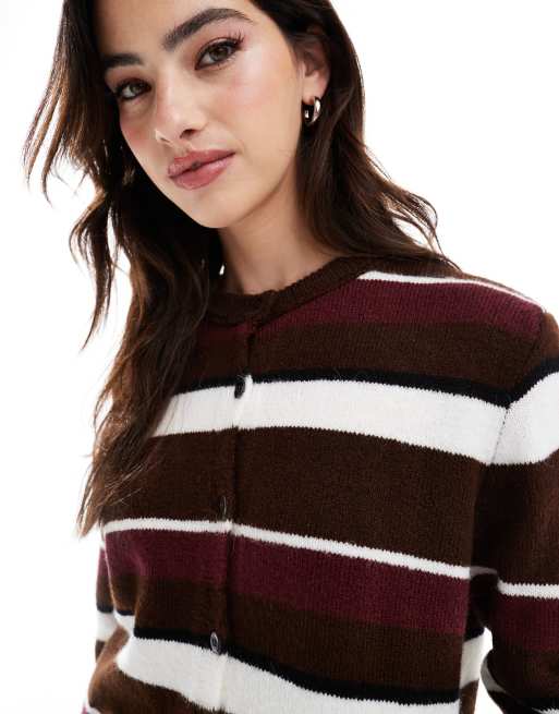 ASOS DESIGN - Strikket cardigan med brune/bordeaux striber