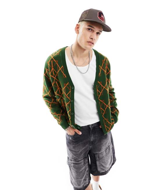 ASOS DESIGN - Strikket cardigan med geometrisk design i grøn i afslappet pasform