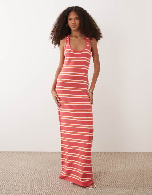 ASOS DESIGN - Strikket maxi-sommerkjole med røde striber