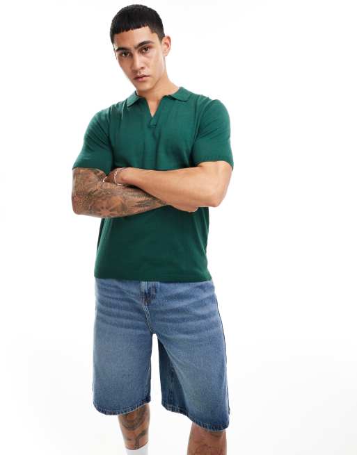 ASOS DESIGN - Strikket og blågrøn polotrøje med hakrevers i bomuld