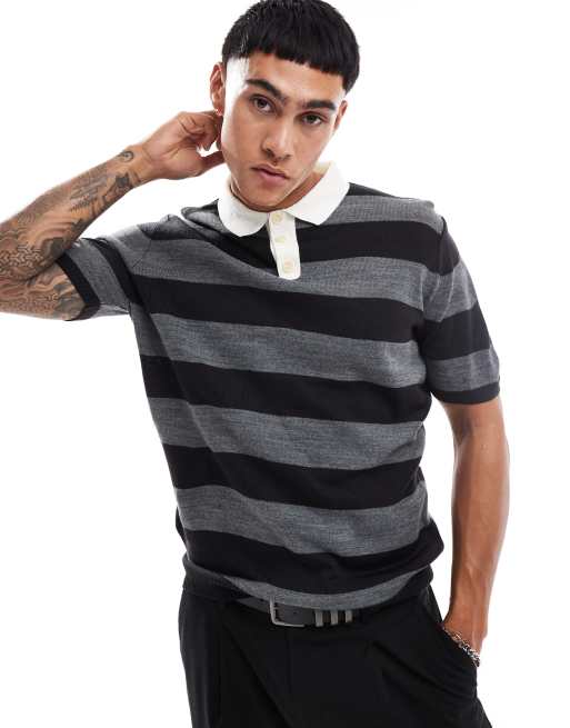 ASOS DESIGN - Strikket rugby-polo med korte ærmer og grå striber