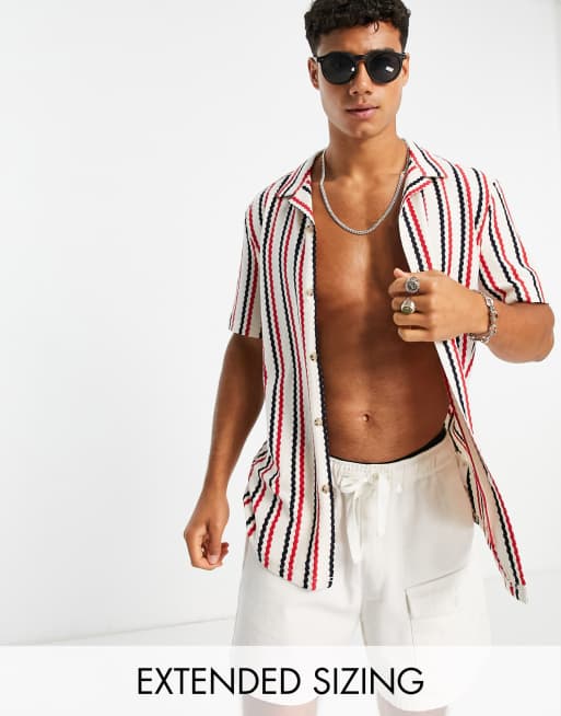 ASOS DESIGN - Strikket skjorte med reverskrave og striber
