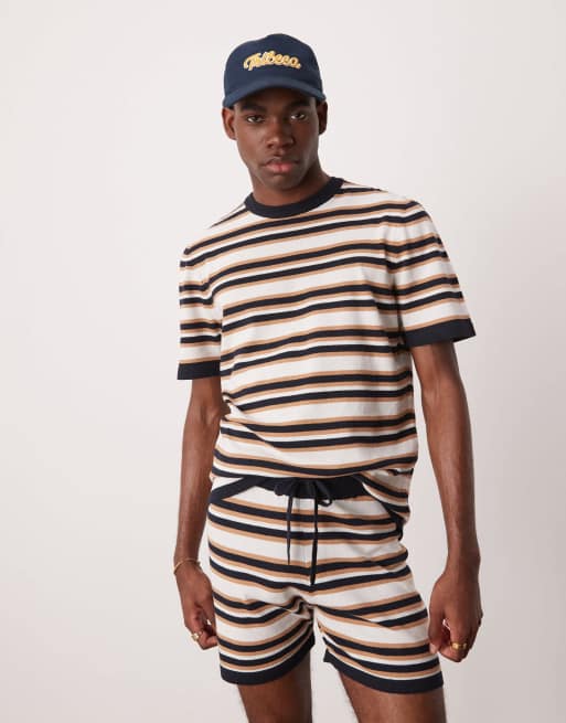 ASOS DESIGN - Strikket T-shirt med striber - Del af sæt