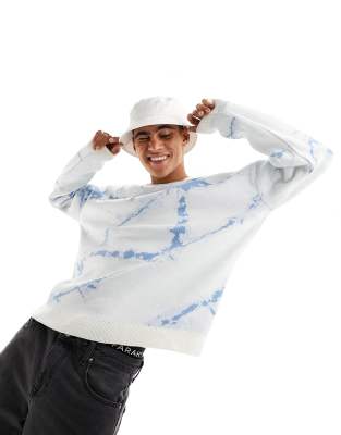 ASOS DESIGN - Strikket trøje med blå batik i afslappet pasform
