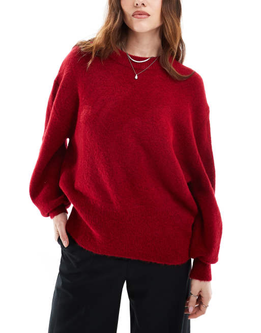 ASOS DESIGN - Striktrøje med rund hals og ballonærmer