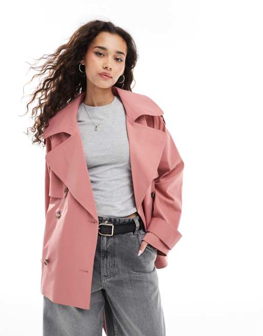 ASOS DESIGN - Støvet lyserød oversized kort trenchcoat med bælte