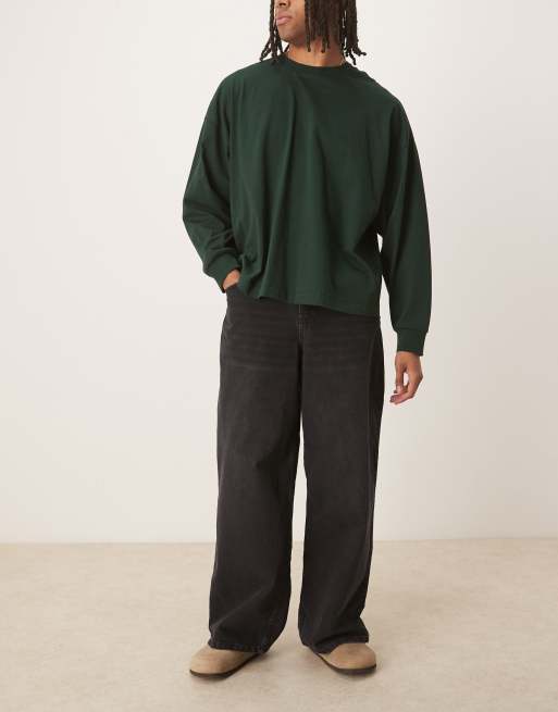 ASOS DESIGN - Super-baggy og plisserede jeans i forvasket sort