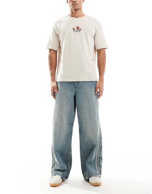 ASOS DESIGN - Super-posede og blå jeans med sporty detaljer