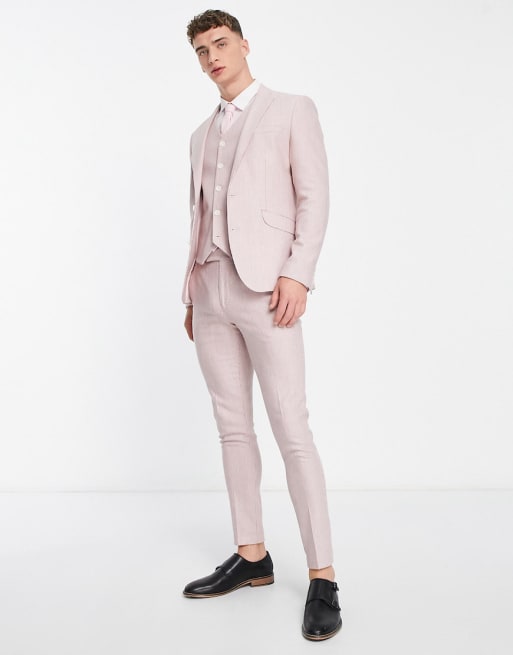 ASOS DESIGN - Super skinny-jakkesæt med lyserøde pepitatern i uldblanding