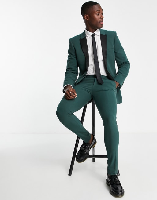 ASOS DESIGN - Super Skinny-smoking i skovgrøn med sort revers