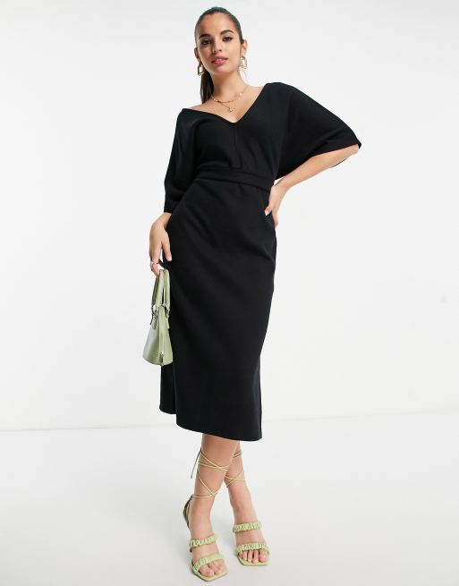 ASOS DESIGN - Superblød sort midi-sweaterkjole med V-hals og bælte