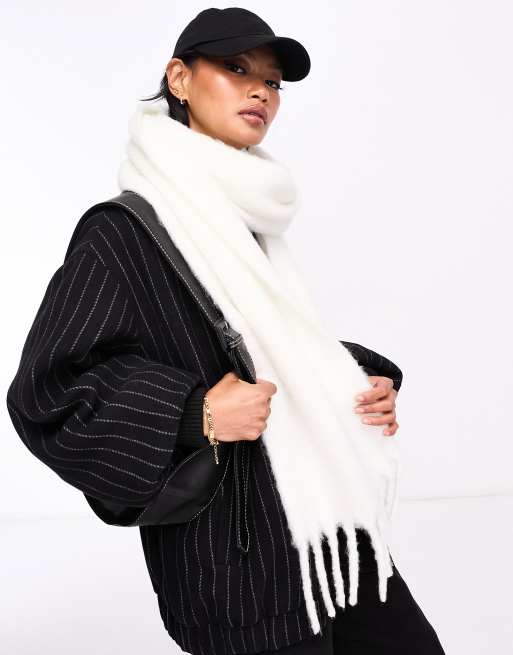ASOS DESIGN - Superfluffy tørklæde med kvaster i snehvid