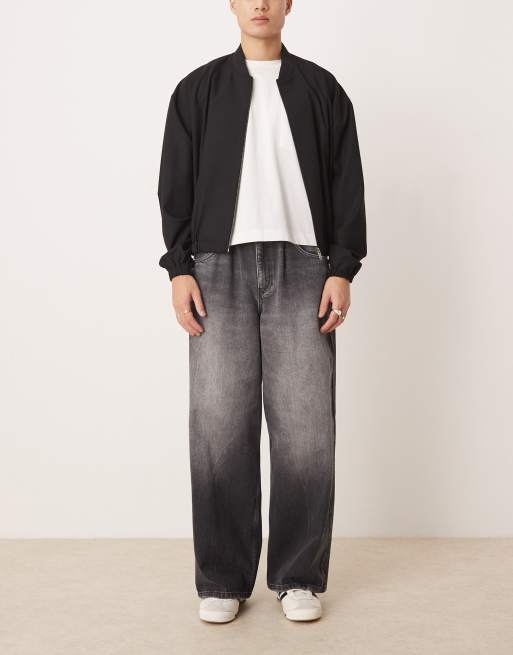 ASOS DESIGN - Superposede jeans med bindebånd i taljen i sort vask