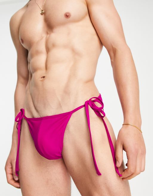 ASOS DESIGN - Svømmebriefs med bindebånd i siderne i mørk pink