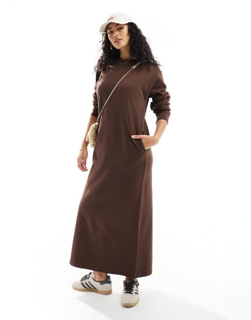 ASOS DESIGN - Sweatshirt-midikjole med lommer i chokoladebrun
