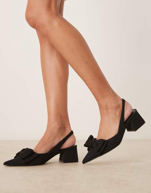ASOS DESIGN - Symphony - Sorte sko med mellemhøj blokhæl, slingback-rem og sløjfe i hør