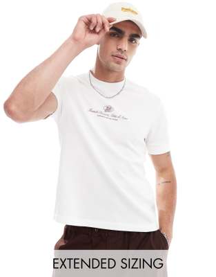 ASOS DESIGN - T-shirt i offwhite med ribber og tekstprint på brystet