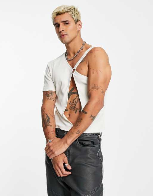 ASOS DESIGN - T-shirt med oneshoulder og udskæring i creme