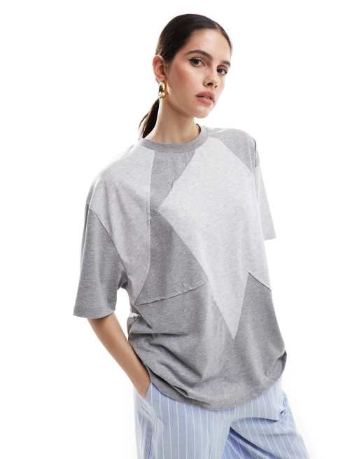 ASOS DESIGN - T-shirt med patchwork-design i meleret lysegrå