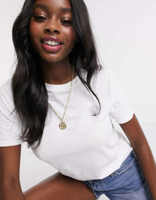 ASOS DESIGN - T-shirt med skitseagtigt muslingemotiv i bomuld - WHITE