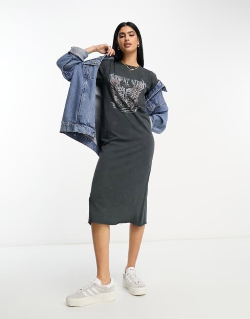 ASOS DESIGN - T-shirt-midikjole med gotisk grafik i forvasket koksgrå