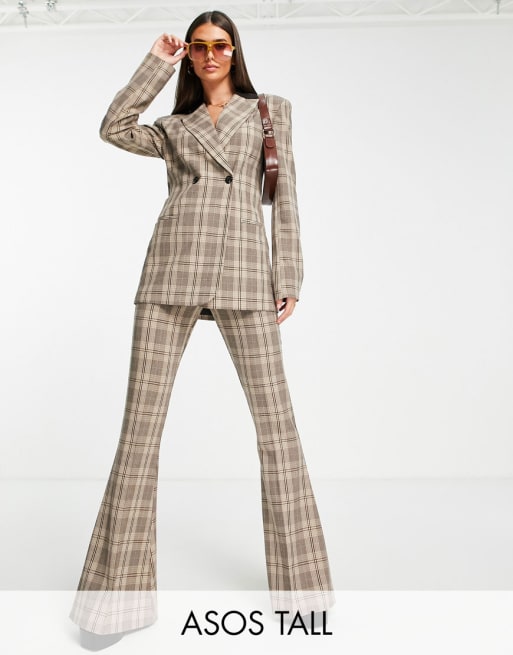 ASOS DESIGN Tall - Brun dobbeltradet jakkesæt med tern