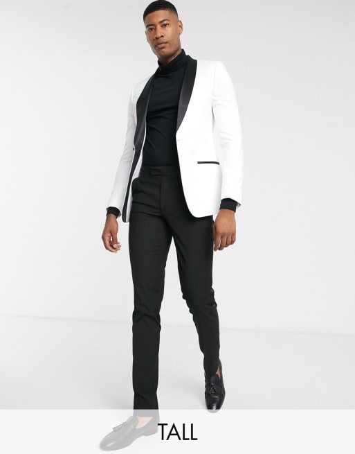 ASOS DESIGN Tall - Hvid smokinghabit i skinny pasform med sort revers