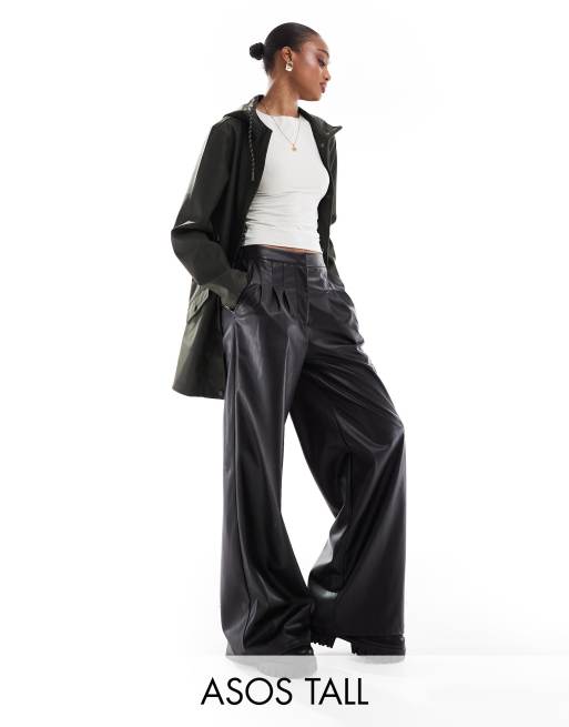 ASOS DESIGN Tall - Plisserede bukser i sort, imiteret læder