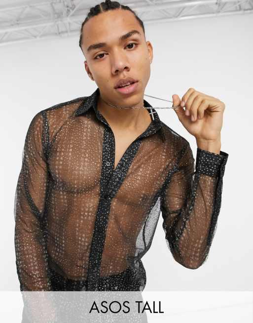 ASOS DESIGN Tall - Sort gennemsigtig skjorte med glimmer-print