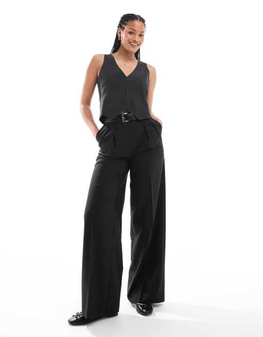 ASOS DESIGN Tall - Sorte skræddersyede afslappede bukser med bælte