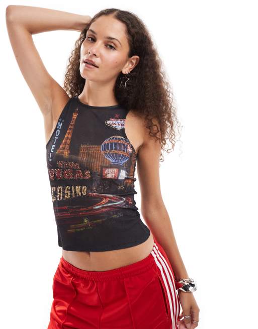 ASOS DESIGN - Tanktop i mesh med Las Vegas-grafik og hotfix-sten