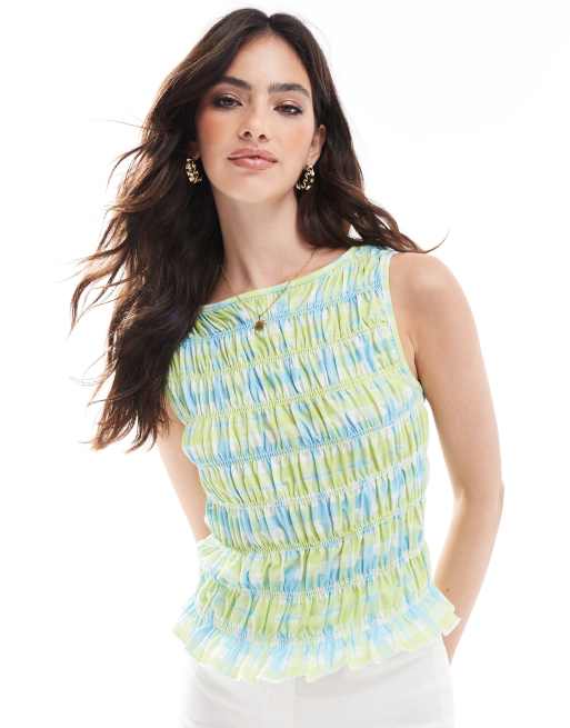 ASOS DESIGN - Tanktop med rynker og grønne gingham-tern