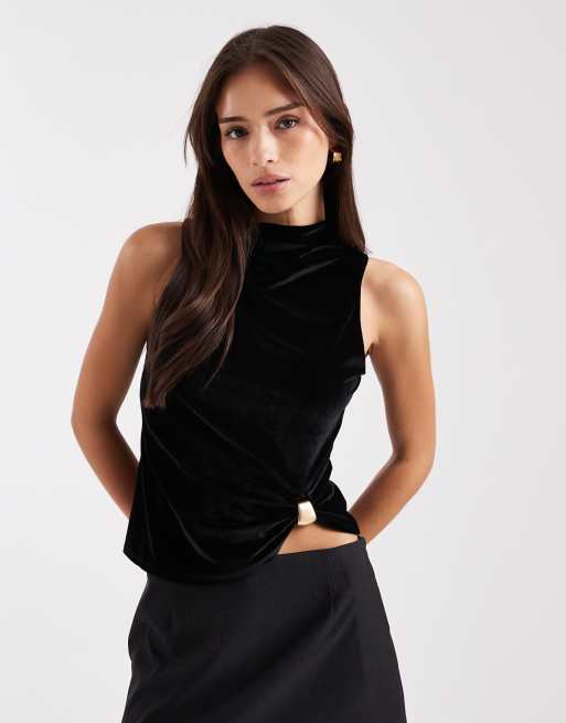 ASOS DESIGN - Tanktop med ståkrave og metaldetalje i velour