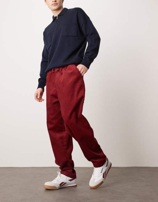 ASOS DESIGN - Tapered bordeauxrøde fløjlsbukser