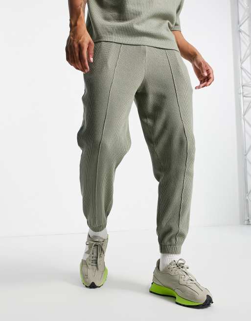 ASOS DESIGN - Tapered cargo-joggingbukser i kakigrøn vaffeltekstur - Del af sæt