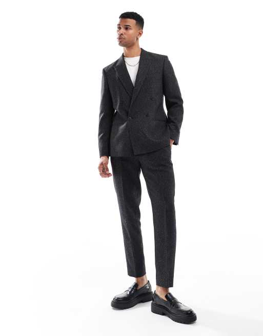 ASOS DESIGN - Tapered habitbukser i sort med sildebensmønster