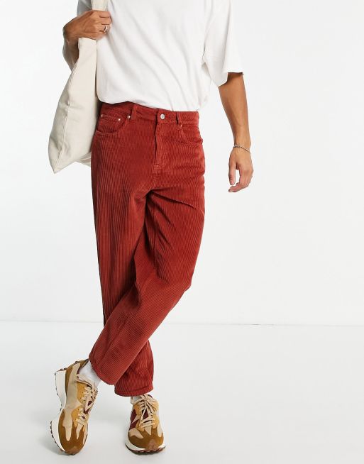 ASOS DESIGN - Tapered jeans i rustrød fløjl i afslappet pasform