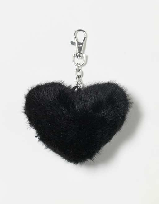 ASOS DESIGN - Taske-nøglering med fluffy hjerte-vedhæng i sort