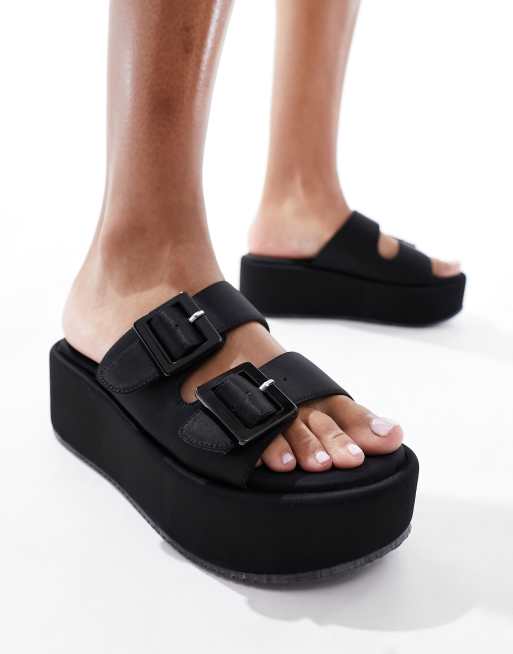 ASOS DESIGN - Taxon - Sorte flatform-mulesandaler med spænde