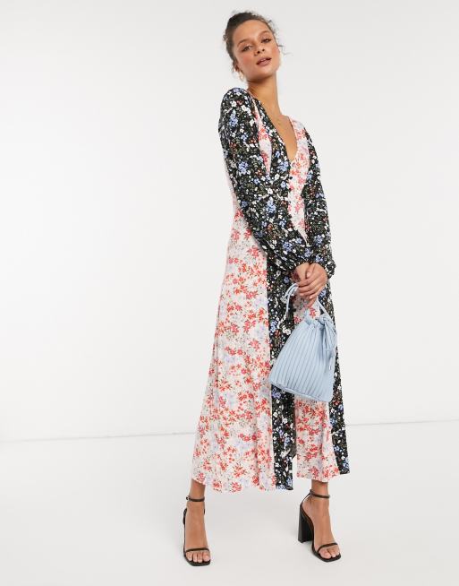ASOS DESIGN - Tea-maxikjole i todelt, kontrasterende blomsterprint i sort og råhvid