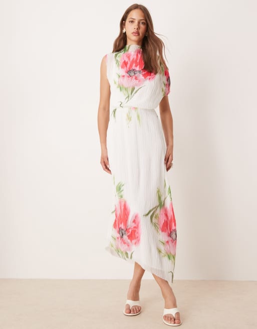 ASOS DESIGN - Tekstureret højhalset midikjole i tekstureret krølstof med åben ryg og placeret print